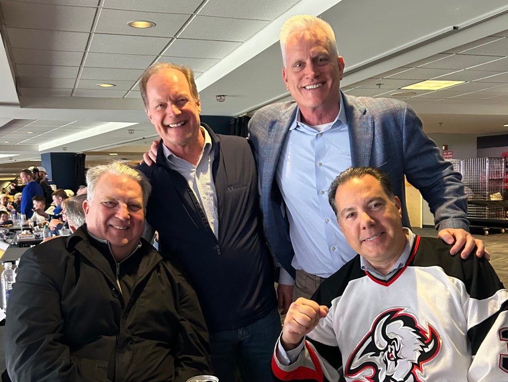 These ideas became a lens for revisiting the countless groups I’ve been part of—from little league football to professional networks. Each one taught me about relationships, resilience, and the importance of boundaries. My newest group was the highlight of the winter — gathered at a Buffalo Sabres game with Rick Hamister, Wayne Keller, and Nick Tzetzo. Nick stole the show in his classic Dominik Hasek jersey.