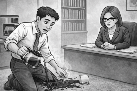 One morning I arrived early.. I made the coffee and ran to answer the phone — except I forgot one small but important detail. I never put the coffee pot under the machine. Moments later, I heard the door open. Pam had arrived. And as I turned, there it was — fresh coffee pouring straight onto that beautiful new plush carpeting.